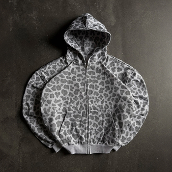 Custom Heavyweight Leopard Full Print Hoodies Algodão Grosso Camuflagem Oversized Zip up Cheetah Print Homens Hoodie